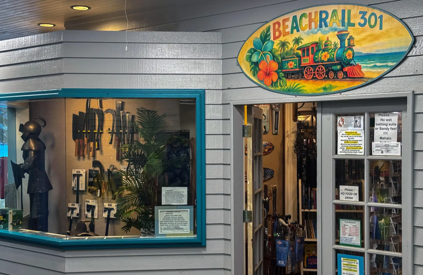 For 25 years, Beachrail 301 has been a Kauai treasure, delighting both locals and visitors with a one-of-a-kind shopping adventure. Discover exclusive finds like the Japanese Spring Steel Machete, Garden-scale Trains, Wind River Garden Chimes, and an enchanting collection of Folkmanis puppets. Browse our unique selection of hats, caps, visors, water shoes, and innovative Flip Flop Socks. Coming soon: USPS shipping services to lighten your load! Visit Beachrail 301 for a truly unique retail journey.